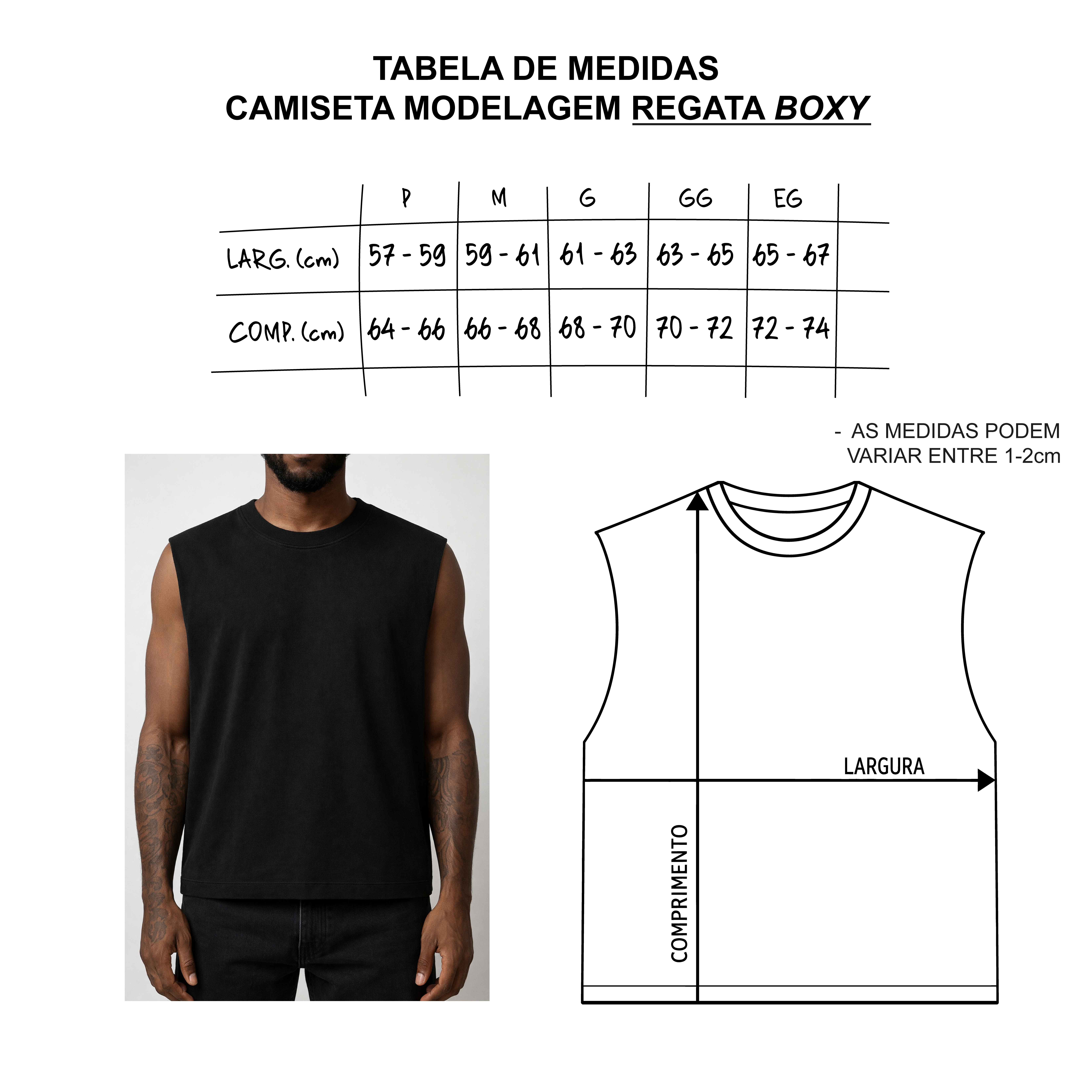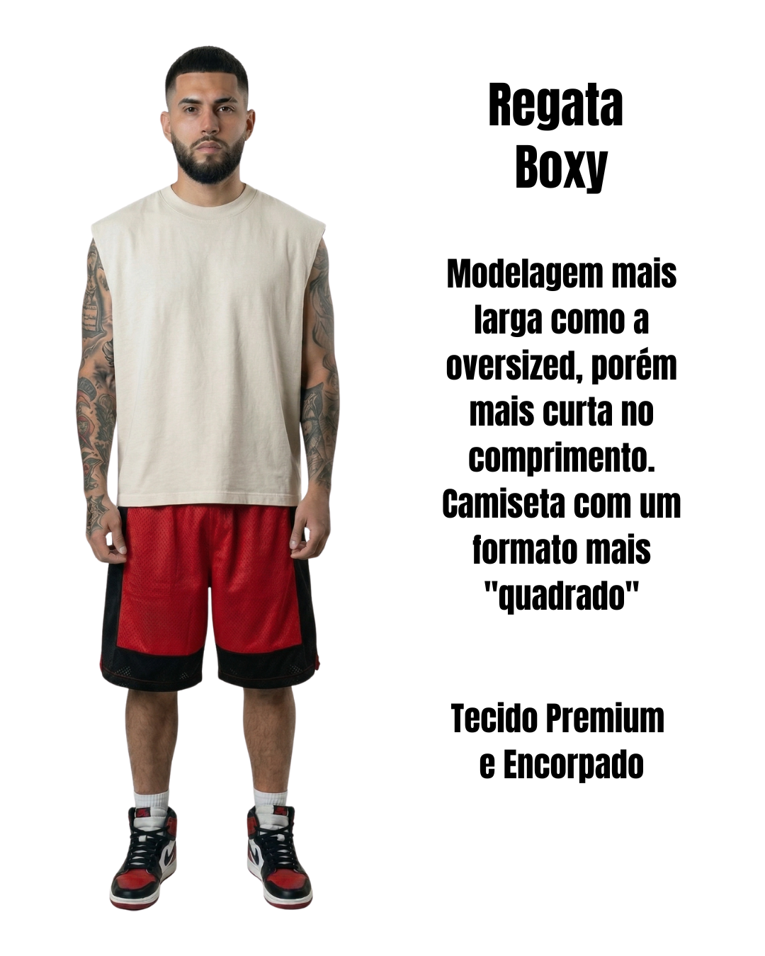 - Camiseta Regata Boxy 100% algodão de alta qualidade com fio 26.1 penteado.